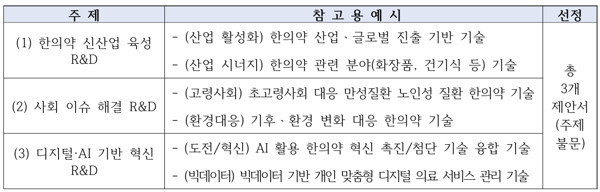① (지정 공모) 한의약 연구개발 수요 우선순위 도출 주제 中 택 1