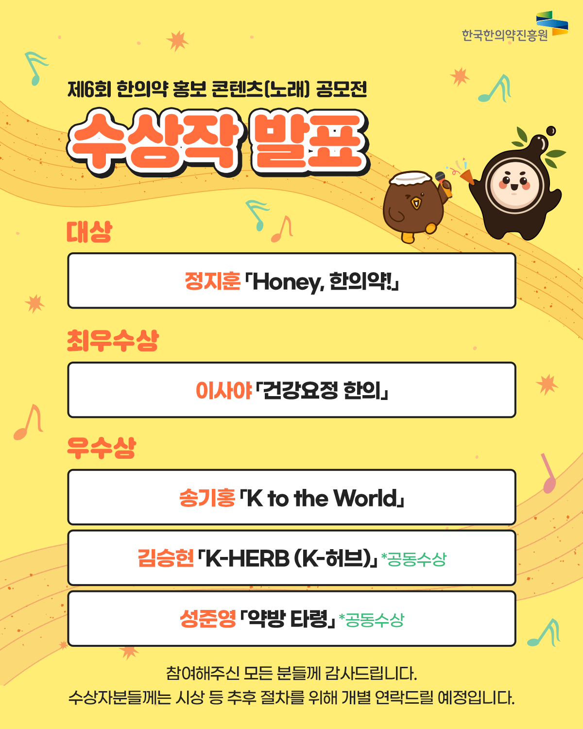 한의약의 가치와 매력을 널리 알리기 위해 개최한 『제6회 한의약 홍보 콘텐츠(노래) 공모전』에