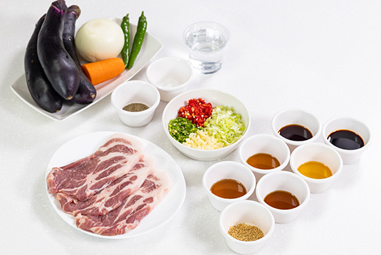 가지도 성질이 찬데 돼지고기 또한 성질이 차갑습니다. 그래서 중국 요리에 가지 돼지고기 요리는 매운 고추기름을 사용합니다. 우리는 청양고추가 들어간 양념장을 쓸 겁니다.