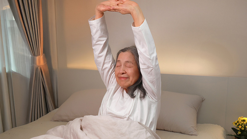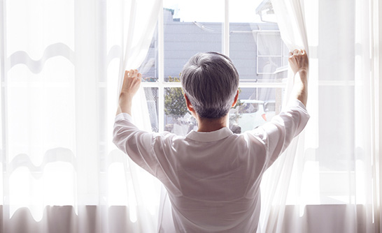 아침 7~9시 사이에 햇빛을 15분 이상 쬐면 멜라토닌 생성을 돕는 생체 리듬이 활성화 된다. 이는 밤이 되면 자연스러운 졸음을 유도하게 된다. 노년기에는 가능한 한 아침 산책이나 햇볕 쬐기를 생활화하는 것이 좋다.