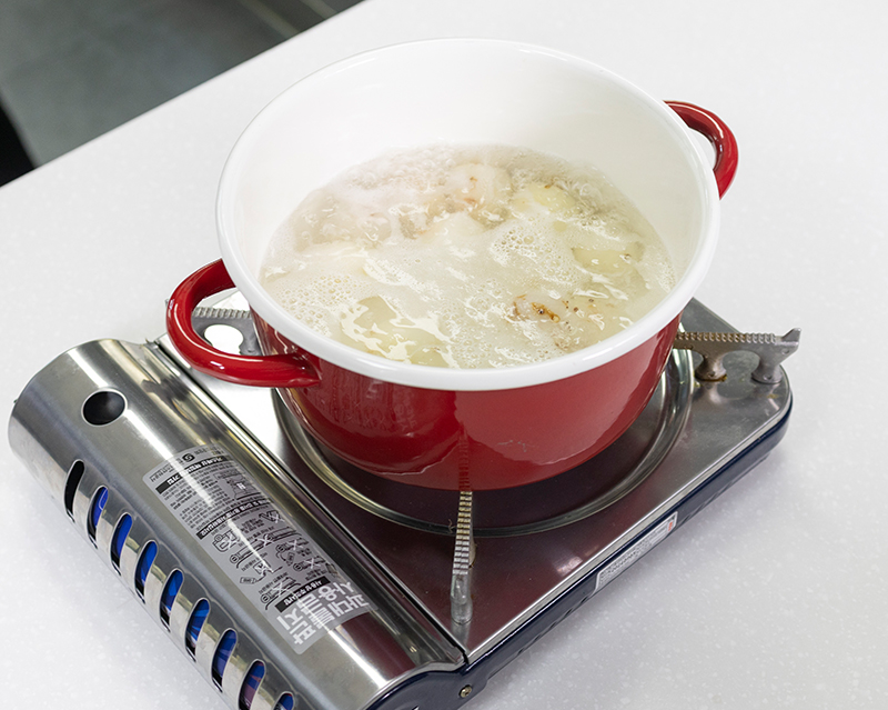 손질한 한 번 더 쌀뜨물에 끓여서 속까지 익힙니다. 그리고 찬물에 다시 담가서 끈적이는 것을 씻어냅니다.