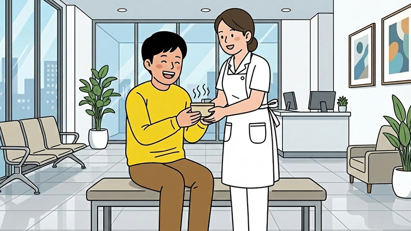 접수를 마치고 돌아보니, 친구들은 모두 지친 얼굴이었습니다. 그날 날씨가 매우 추웠던 데다, 저를 한방병원까지 옮기느라 힘을 많이 썼기 때문이었습니다. 그때 한 간호사분이 힘없이 대기하고 있는 저희에게 따뜻한 쌍화차를 건네주셨습니다. 그전까지 쌍화차는 어른들이나 마시는 차라고 생각했는데, 그날 쌍화차를 마시고는 생각이 달라졌습니다. 춥고 지친 몸에 따뜻한 온기를 불어넣어 준 그 쌍화차와, 우리에게 따뜻한 차를 나눠주신 간호사분의 배려가 지친 몸과 마음을 편안하게 만들어 주었습니다.