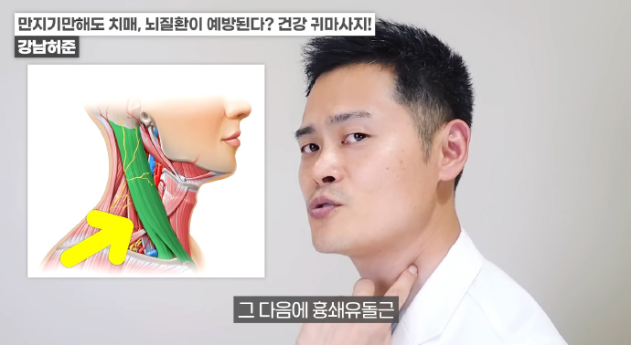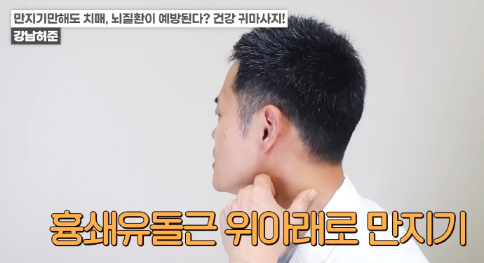 흉쇄유돌근을 위에서 아래로 만져주면 전체적으로 혈액순환이 좋아져 귓불에 탄력이 생긴다. 뇌 혈액순환이 좋아질 뿐만 아니라 얼굴이 화사해지고 신장 기능도 좋아진다.